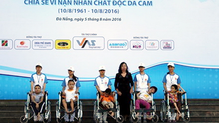 岘港市举行为橙剂受害者募捐步行活动,3千多人参加(Tienphong.vn / 江青摄)
