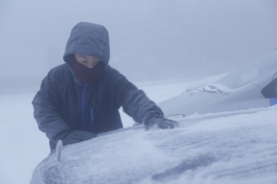 年轻人拍雪景