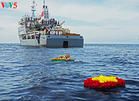 (VOVworld)- 29年前的1988年3月14日,在越南长沙群岛孤伶礁(Co Lin)-鬼鹿角礁(Gac Ma)海域,64名越南海军战士勇敢围成一个圆圈保卫国旗并英勇牺牲,肯定了祖国主权,坚强反击实力占优的中国军舰。