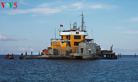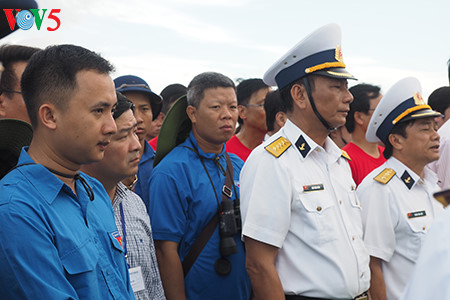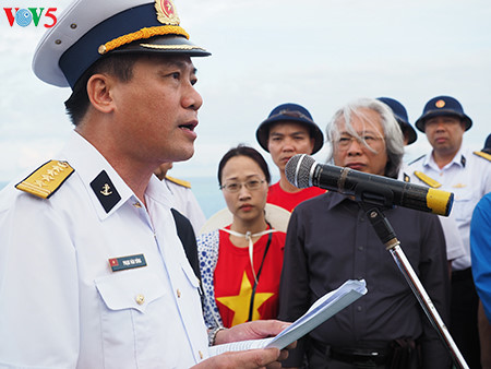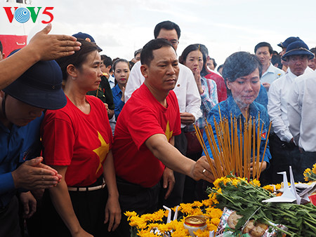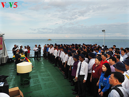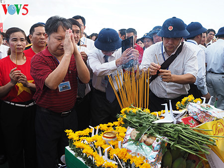 下面VOV5向您介绍记者美茶于去年6月探访这里时拍摄的在鬼鹿角礁牺牲的64名越南海军战士及英雄烈士缅怀仪式的图片。