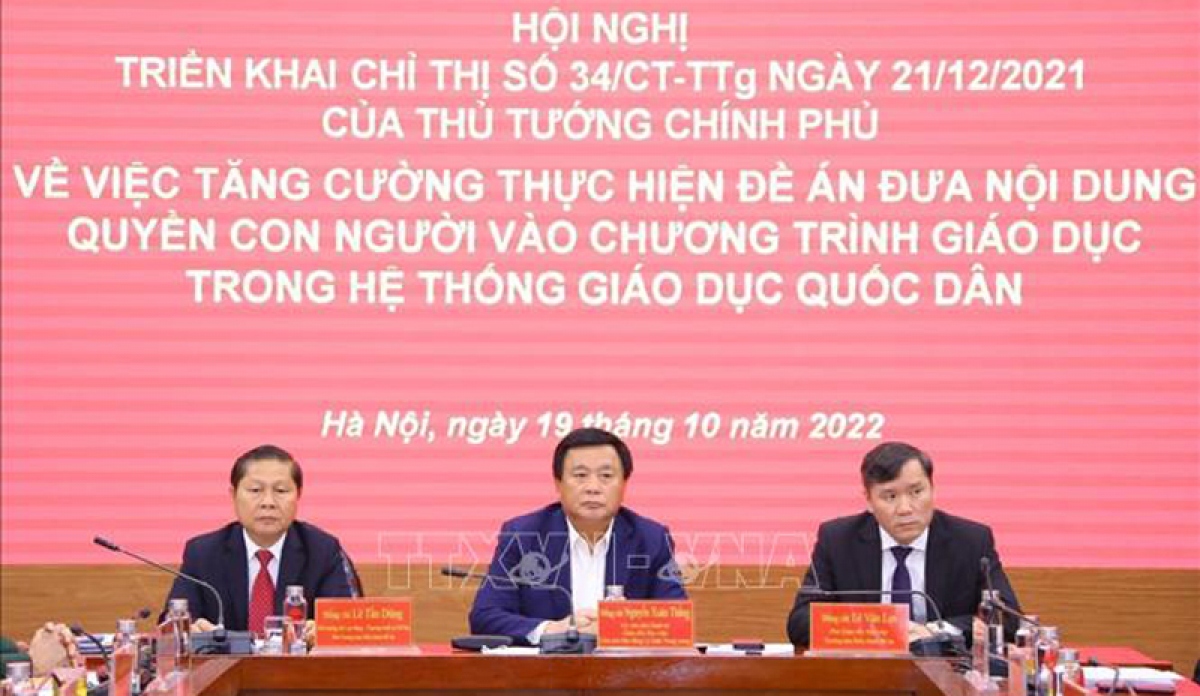 胡志明国家政治学院院长阮春胜主持落实政治局关于将人权教育纳入国家教育系统之中的决议的会议 |