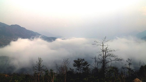 他说:“乌贵胡峰又称沙坝天门,离站尊护林站约两公里,是越南海拔最高的公路,约2000米。从山顶往莱州省方向看,可看到连绵的高山和山谷及山腰上蜿蜒如一条线的公路。老街省那边的山岭霜雾弥漫,而莱州省这边却阳光灿烂。”