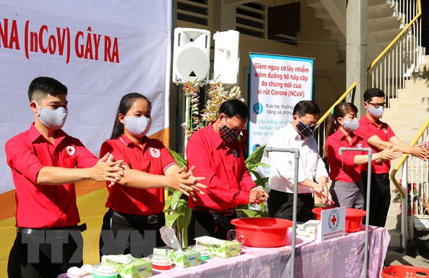 越南红十字会志愿者为人们示范一整套正确的洗手步骤 |