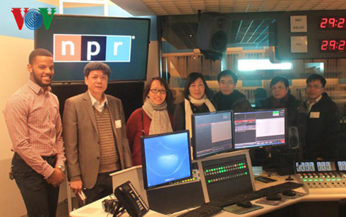 | 本台副台长武海(左二)及各部门领导与国际听众合影 |
