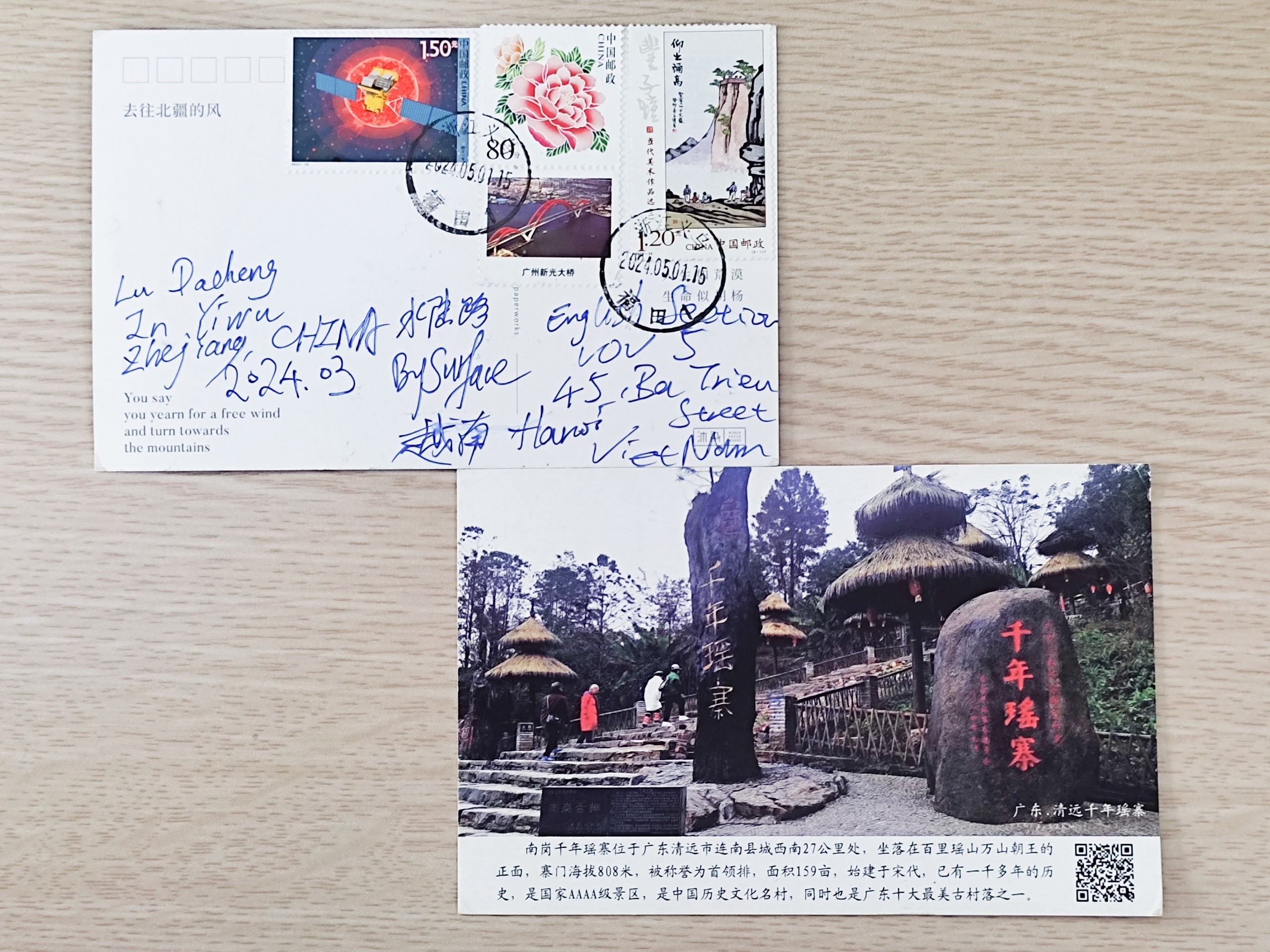 此外,我们还收到浙江省听众陆达成的两张明信片,一张是草原风景、另一张是“千年瑶寨”;山西省的刘凡也寄来两张明信片,在上面,刘凡写道:“感谢贵台给我放音机会与认可。祝愿两国人民在社会主义的护佑下幸福欢乐。”谢谢两位听友的厚爱,特别感谢刘凡听众接受采访,参加我们的节目。