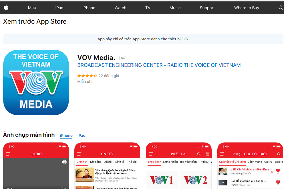 使用“VOV Media”,大家可以免费收听本台所有频道,从VOV1到VOV5,以及地方广播频道和“交通频道”、“FM 89频道”、“湄公频道”等专门频道。除了在线收听广播功能外,“VOV Media”还为您提供方便您时时更新信息的两个基本电视频道VTC1和VOVTV。
