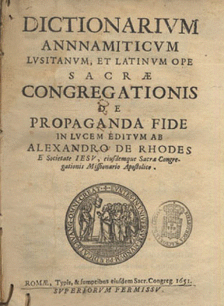 于是,他们就使用本国文字——罗马文字注释越南语读音,并撰写宗教材料。起初,这些记号系统很不统一。后来,法国传教士亚历山德罗(Alexandre de Rhodes)将各种不同的注音方法统一起来。1651年,他出版了越南-葡萄牙-罗马字典。