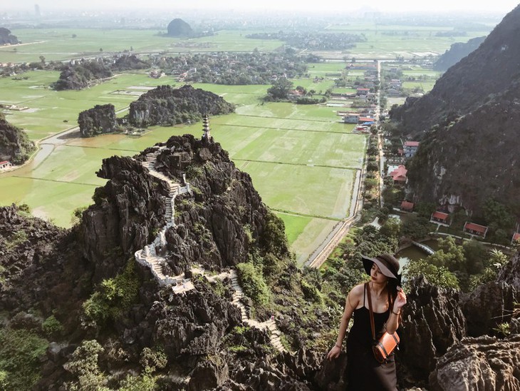 在跳舞山顶上,游客可以欣赏十分优美的三谷(Tam Cốc)全景。