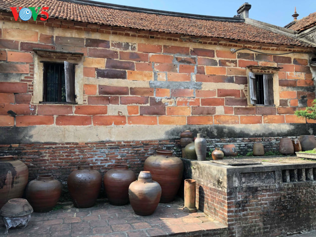 使用附近土河古陶器村生产的小瓦缸建的一面墙。 |