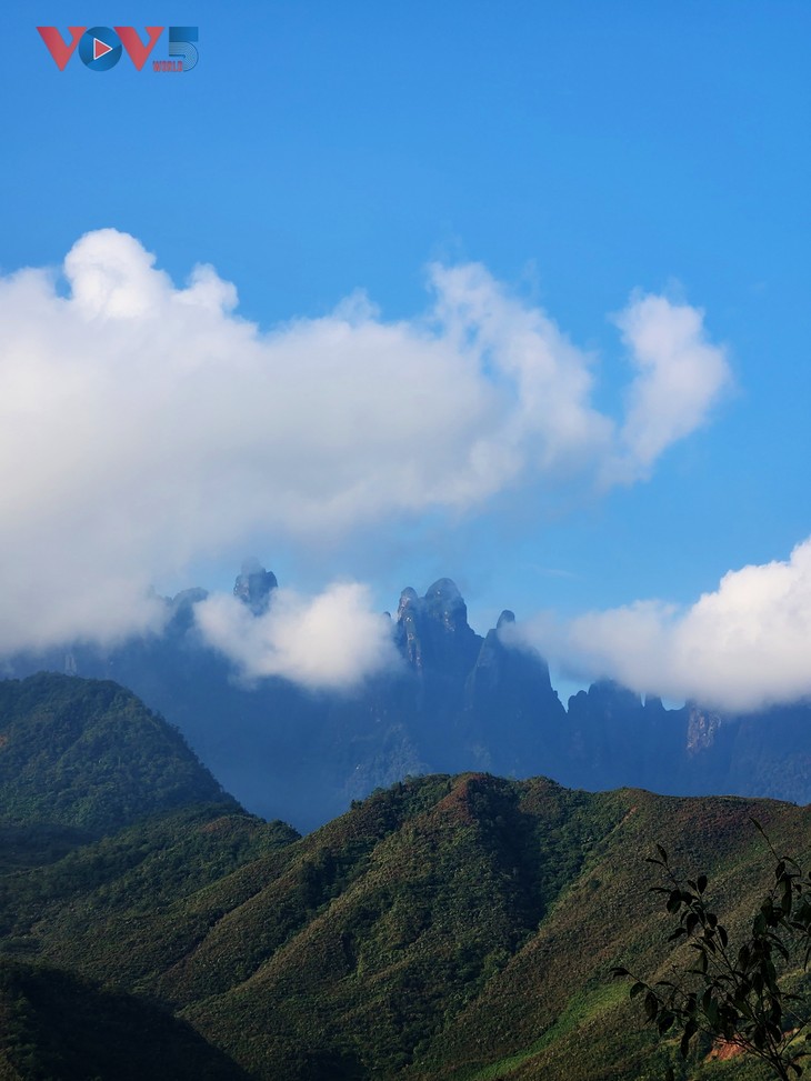 | 奇观山峰,海拔3046米,是莱州、老街两省的自然边界。徒步旅行爱好者通常称其为白木梁子峰。这里被评价为越南观赏云海、黎明和黄昏等美景最好的地方。 |