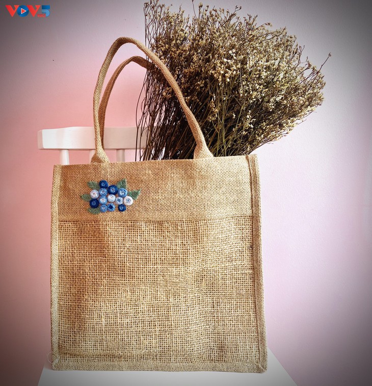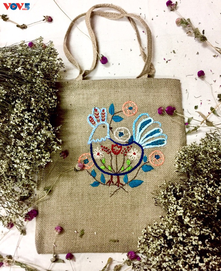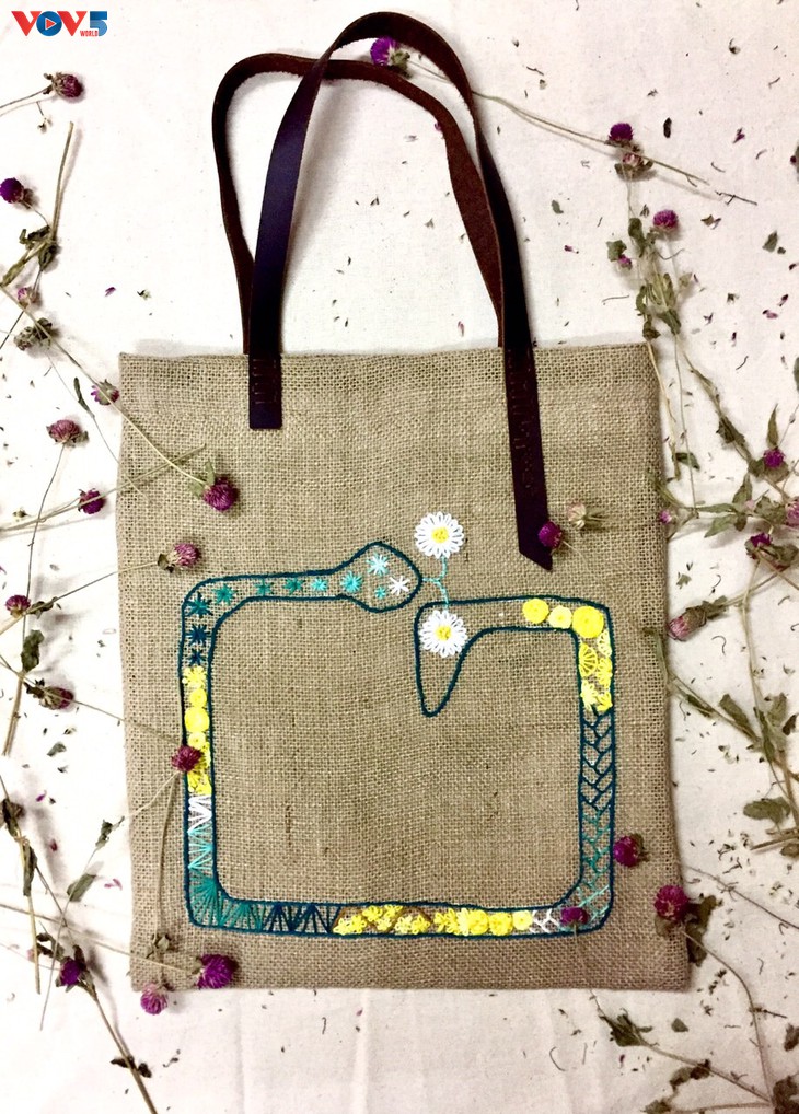 这些包的独特之处是黄麻面料上的手工刺绣图案,其设计灵感来自越南民间文化。以下是“Là lá la”品牌的一些黄麻袋产品: