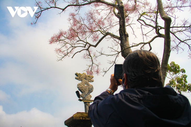 游客到顺化京城亲眼观看盛开的梧桐。 |