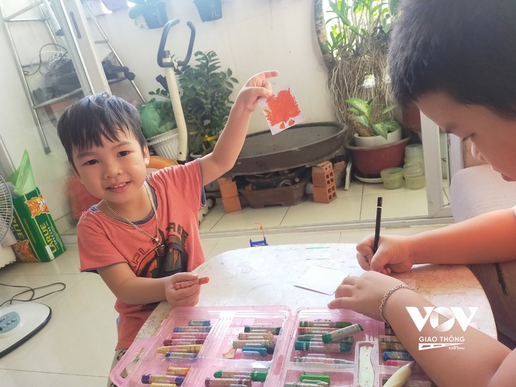 在胡志明市守德市安富坊平庆公寓,当父母日夜辛勤工作,为各家方舱医院提供200份餐食时,孩子们也想像父母一样,帮助抗疫一线的医护人员。