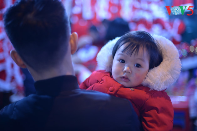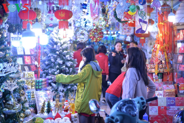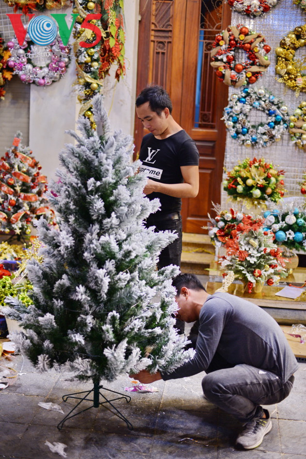 这几天,河内各条街道摆满了各式各样的圣诞装饰品。 |