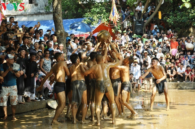 古人使用菠萝蜜木制作的比赛用球被庄重地放在圣庙的院子里。 |