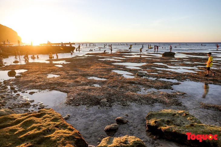 下午四五点潮落,露出一条穿过石阵的小道。图片来源:《toquoc.vn》新闻网。