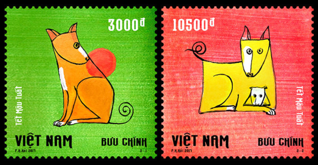 第一枚邮票面值为三千越盾,票面上印有狗爸爸的图片。第二枚邮票面值为1.05万越盾,票面上印有狗妈妈带小狗的图案,表现母子情。