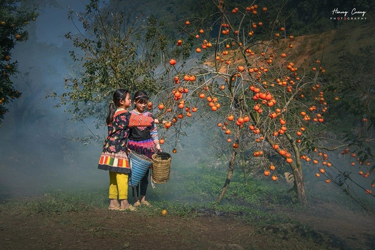 香甜多汁的柿子是极具吸引力的礼物,而进入柿子成熟季节的木州则是游客不可错过的旅游目的地。图片来源:《越南+》新闻网,摄影:春梅。 |