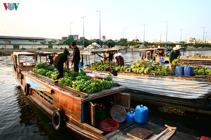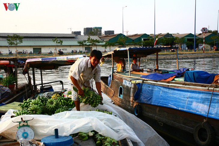 这些商船主要来自龙安、前江、永隆、朔庄、安江等西南部省份。运往胡志明市的货物主要是水果、花卉、农产品等。船上的货物直接在码头上销售,形成了集市空间。