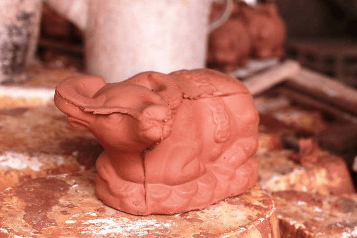 生产“金牛”的第一步是拌泥。新渊镇新福庆坊居民阮文闲从事该行30多年。今年,他家接到很多订单,生产一万多头陶瓷水牛。