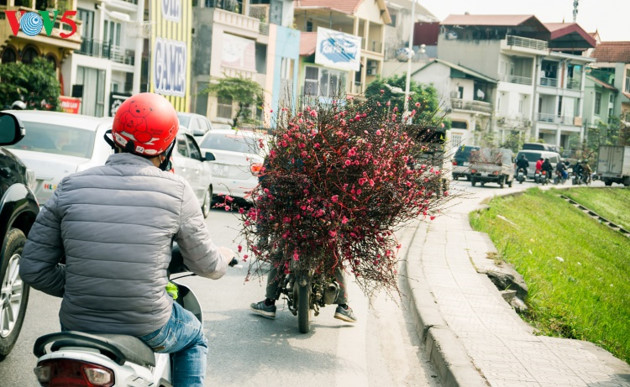 广安花卉市场附近的日新桃区充满春节色彩。 |