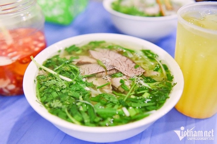 作者祖卡斯介绍说:“跟河内传统河粉一样,这家店的河粉汤水十分清澈,整天一直熬着,这样才能熬出浓郁的味道。”图片来源:vietnamnet.vn。 |
