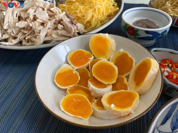 记者永娟说:“什锦丝汤米线是河内特色美食。过去,家庭主妇一般在大年初三做这道风味小食。大年初一、初二,吃了很多粽子、肉和鱼后,能吃到一碗米线真是太开胃了。起初,只在春节期间做,但现在一年四季都可以做,用于聚餐和招待密友。什锦丝汤米线的做法很讲究,需要20多种食材,其中不可少的是咸蛋、肉团、鸡肉、蛋等。汤必须有方格星虫和虾干。有了这些才能有什锦丝汤米线的味道。另外,还要一点印田鳖蝽精油和虾酱。”