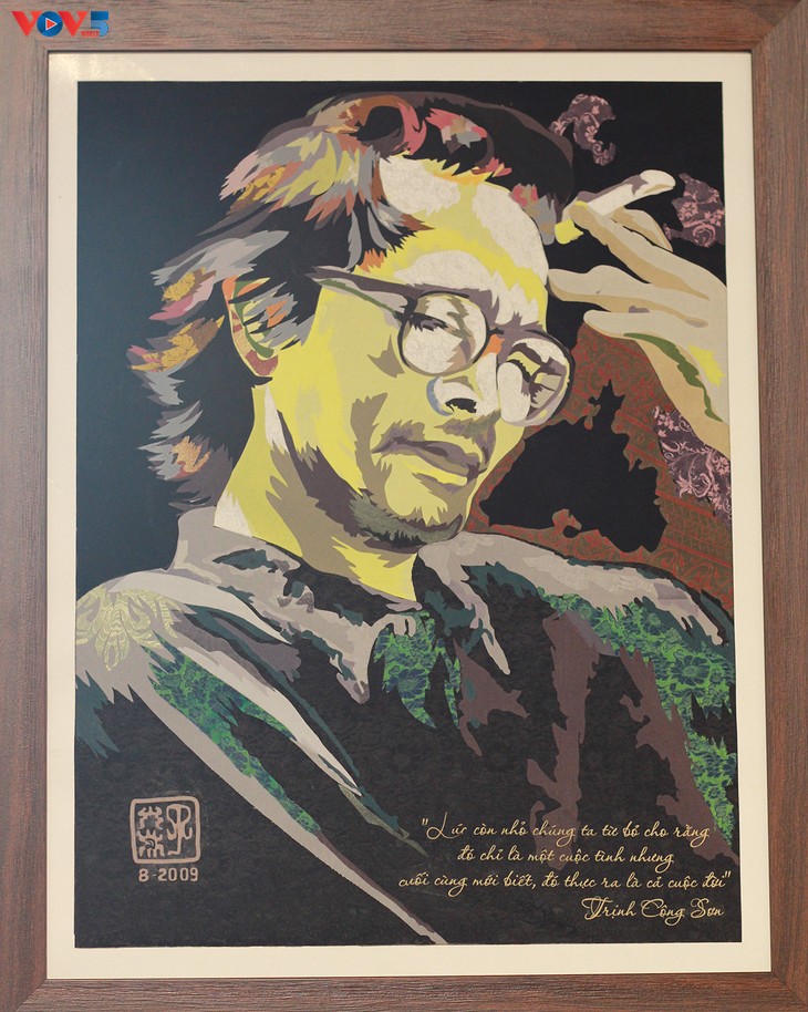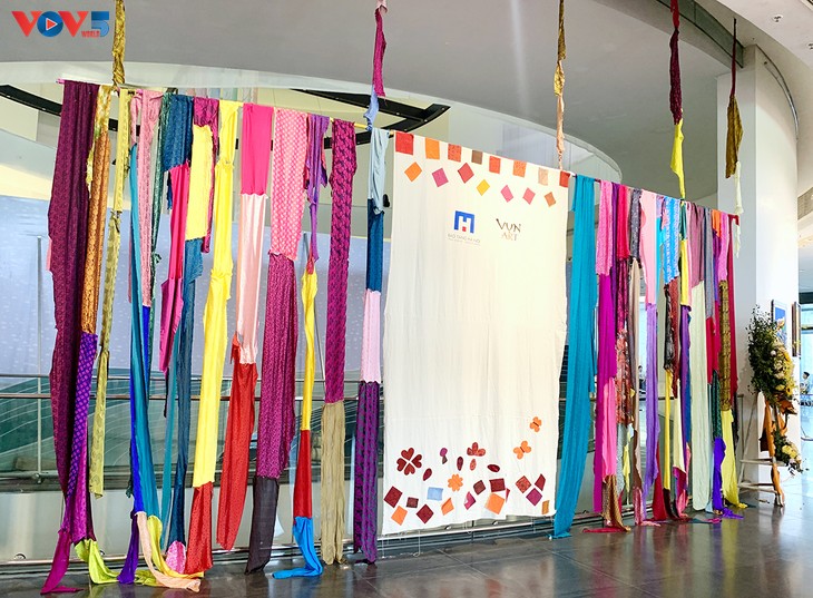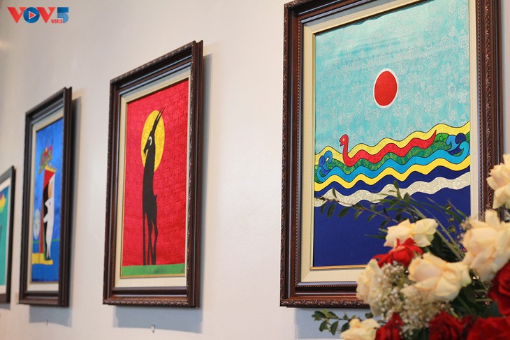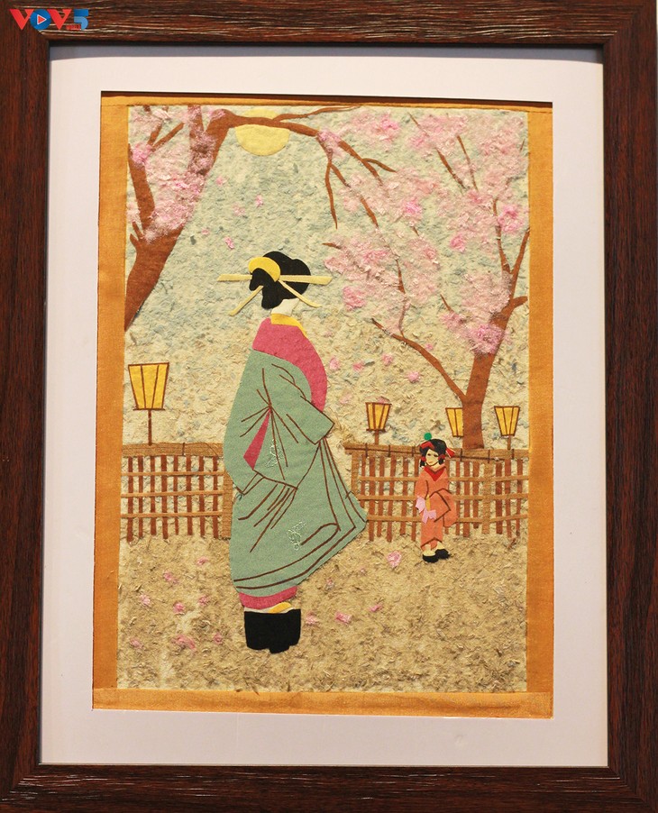 值得一提的是,这些作品是河内万福丝绸村“碎片艺术”(Vụn Art)合作社的残疾人以其灵巧的双手将一个个丝绸碎片拼成的。