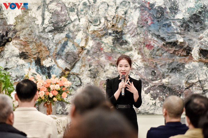 星期六作坊创始人阮氏贵芳在开业仪式上致辞。 |