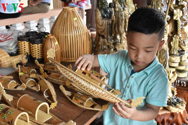 小朋友很喜欢竹制纪念品。 |