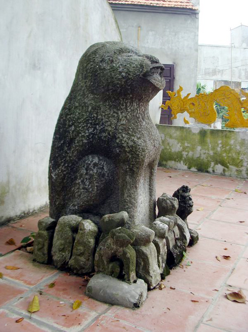 在村头接近一座古寺的一处丘地上有一个约10平方米的祭台,周围建有墙和两根大柱子。祭台上有一组狗像。这些狗都由青石做成,神气地坐着。坐在中间的是大狗,高约1米;周围是群小狗,姿态生动可爱。大狗小狗都面朝西北方向,即巴维山和三岛山顶的中间。