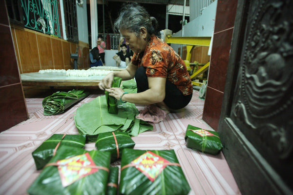 阮氏戌接着说:“2002年,村民做无馅糍粑敬献雄王。村民熬夜做,糍粑有1.8吨重,其中糯米有1.3吨,创了纪录。每年农历2月初7是村庙会,业户把糍粑送到亭庙祭拜”。