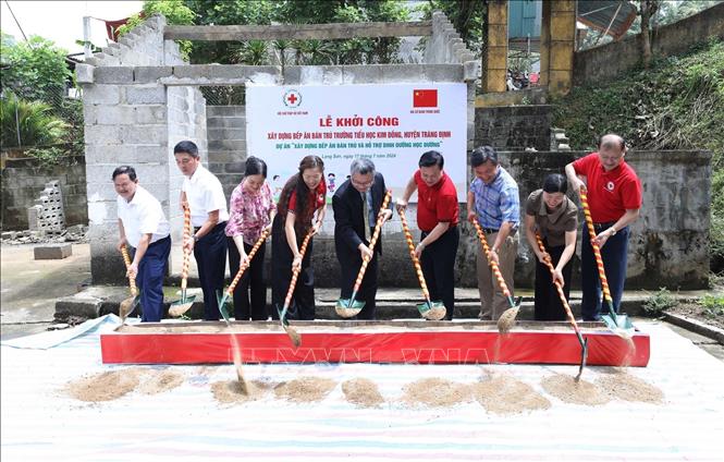 (VOVWORLD) -越南红十字会中央委员会和中国驻越南大使馆17日在谅山省长定县金童乡举行了奠基仪式,建设金童小学校半寄宿食堂。