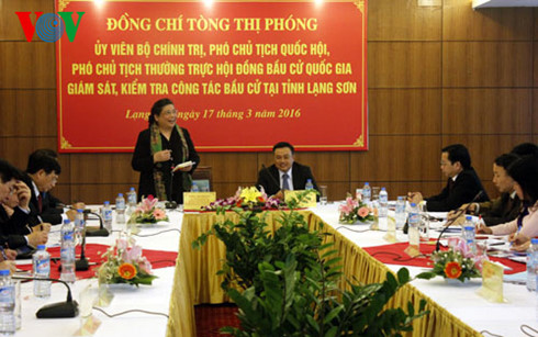 丛氏放对谅山省认真执行和及时开展国家选举委员会关于2016至2021年任期各级人民议会和国会代表的选举工作的指示表示赞扬。
