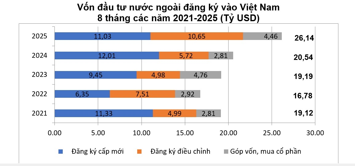值得注意的是,今年前8个月,越南实际利用外资约154亿美元,同比增长8.8%。这是近5年来头8个月外商直接投资实际到位的最高额。