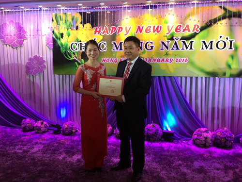 黄志忠向在2015年旅居香港和澳门越南人活动中成绩优异的个人授予越南驻香港和澳门总领事馆的奖状。