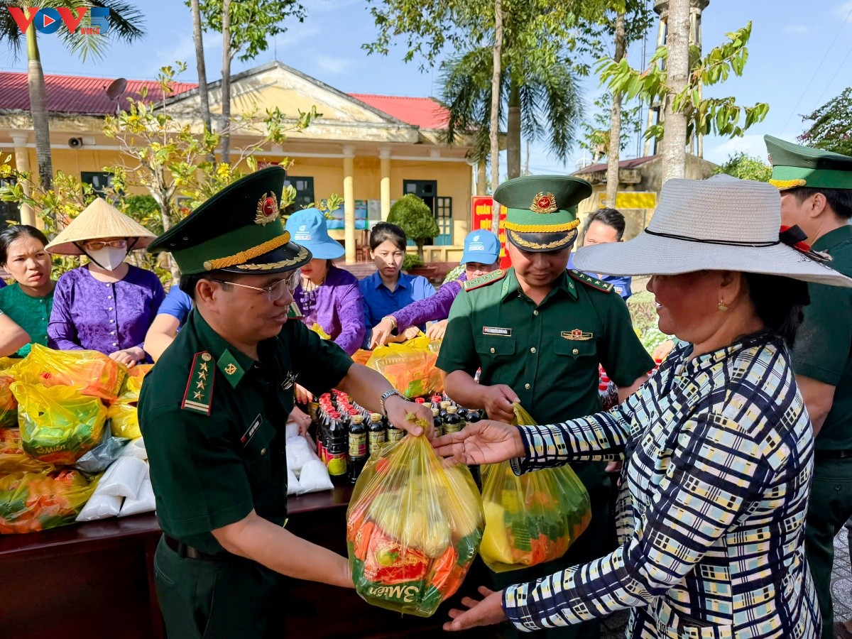 (VOVWORLD) - 12月18日在来和边防哨所,芹苴市边防部队指挥部与芹苴市军事指挥部联合组织“特别集市”活动,向贫困家庭免费赠送生活必需品。