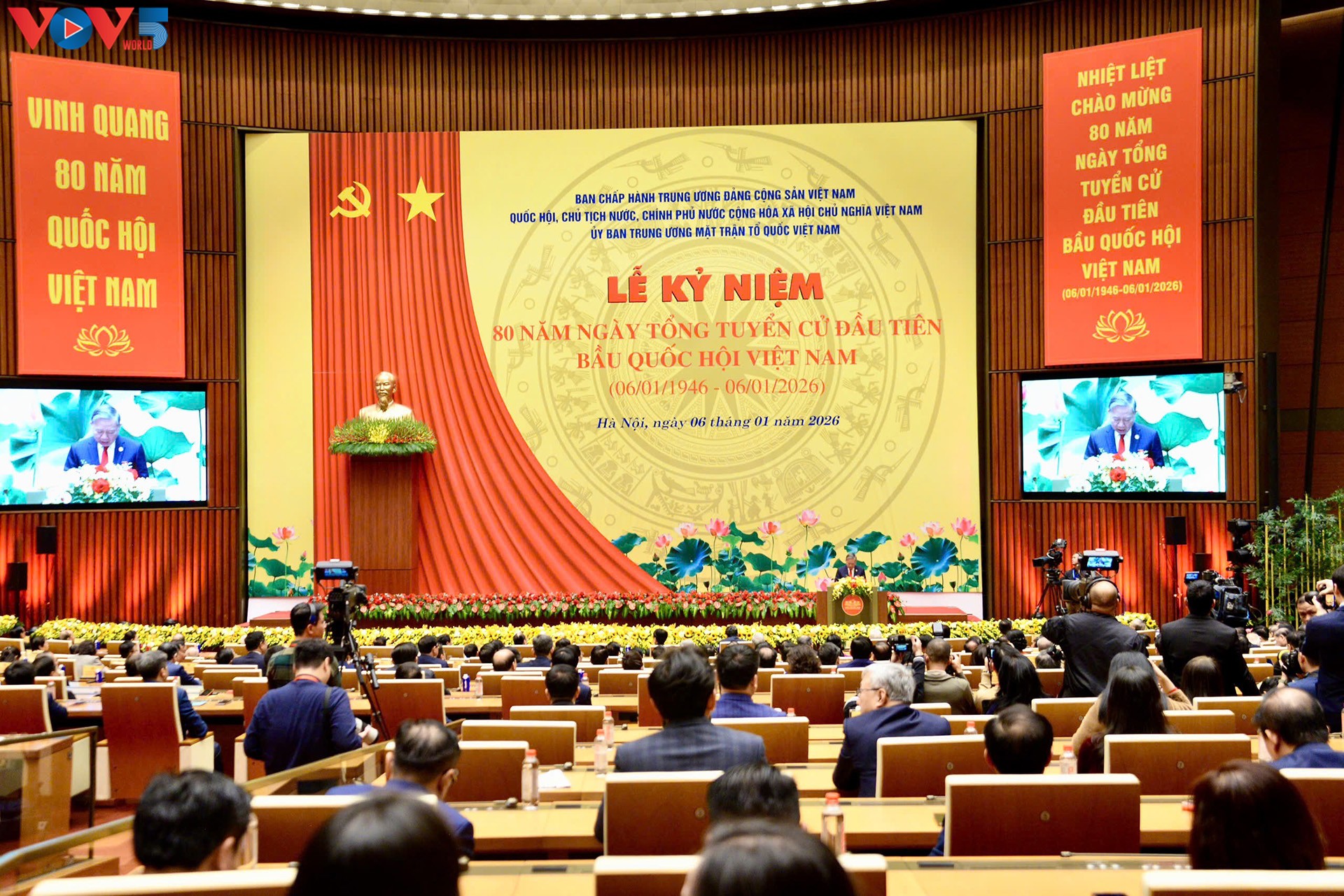 在纪念仪式上,苏林总书记强调,1946年1月6日的历史事件已成为一个光辉的里程碑,标志着新越南国家民主制度发展迈出了第一个大的步伐,也印证了一个伟大的真理:国家权力属于人民。苏林总书记指出,自1946年这一历史性里程碑事件以来,越南国会陪伴国家走过了80年,历经15届任期,不断成熟壮大,巩固了其作为国家政治和法律生活中心以及在越南社会主义法治国家建设和完善中发挥关键作用的立宪机构的地位。