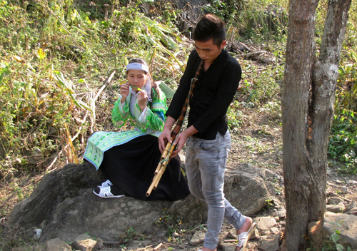 太原省同喜县的芦笙吹奏艺人李文生告诉记者:“赫蒙族男青年必须会吹芦笙。我要学三年,到18岁才能吹。想找女朋友或和普通朋友沟通就要吹芦笙。我爱人也是在听我吹芦笙后才看上我的,就因为芦笙,我们才能走到了一起。”