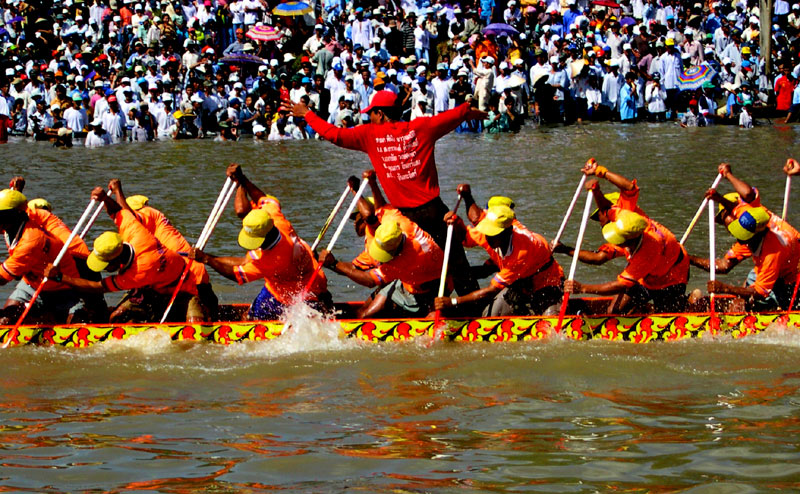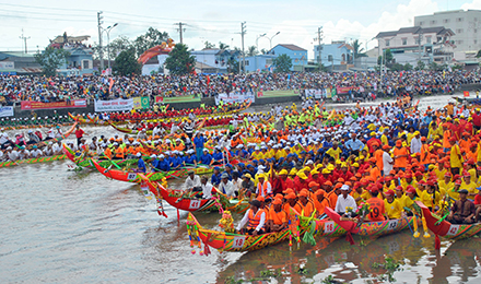 赛龙舟早已成为南方高棉族的传统节日——祭月节必不可少且引人入胜的活动。朔庄省的赛龙舟不仅是当地高棉族任人欢聚的机会,还吸引南方各省众多高棉族人参加。高棉族一年当中有很多传统盛会,其中赛龙舟当属最大。