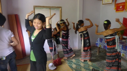 她告诉我们:“我们从小就得到奶奶、妈妈亲自教授舞蹈。如今,我们又向家里的和村里的小孩传授,旨在让他们更了解民族根源。现在的孩子学习能力很强。她们每天都学,一天也不落。有些才四岁就能跳得很熟练了。”