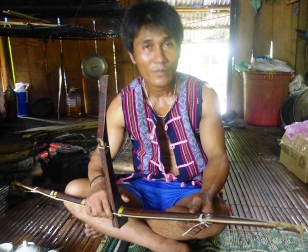 布赫刘·波告诉我们:“戈都族祖先很早就制作弓弩了,而且世代相传。制弩很难,首先难在选材,要到林里找。能用来制弩的树不多,有时要找两三天。带回来后还要在火上烘,然后刮削和弯曲。技术不精会弄断或准头不好。总而言之,制弩很难,而会射弩的人很多。”