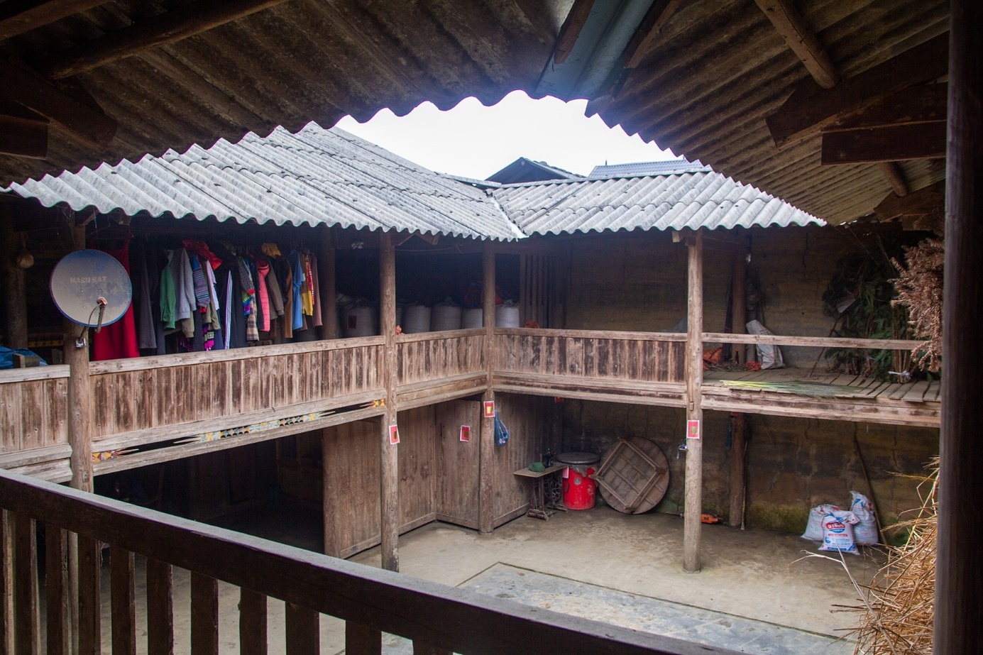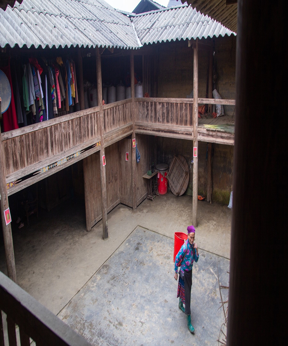 土坯房的框架都是木制的,屋顶上覆盖阴阳瓦。赫蒙族同胞用木板做成模具,将粘土倒入模具中,然后用杵杵土使其粘在一起,这样拿去模具时土坯就不会散落。土坯房的土墙厚 60 至 70 厘米,房内冬暖夏凉。