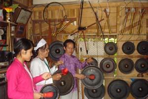 如果说西原地区少数民族中,敲锣钲的主要为男性的话,那么芒族则是女性。除了代表各种音符外,一套锣钲也体现一年中的12个月。