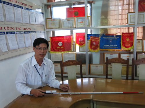 阮维规老师的“盲人使用的智能导盲杖”在2014年科技发明比赛上荣获三等奖。最近,他的产品也被胡志明市盲人学校订购。