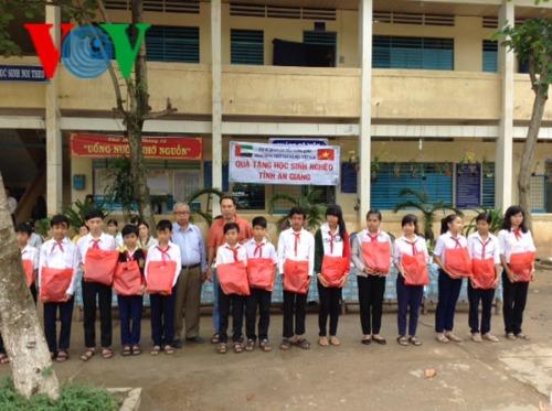 | 穆罕默德·优素福(蓝衣)向安江省家境困难学生赠送礼物 |