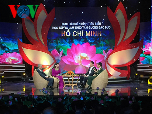 | 武孟河(右二)出席越南全国学习胡志明道德榜样运动先进典型交流活动 |