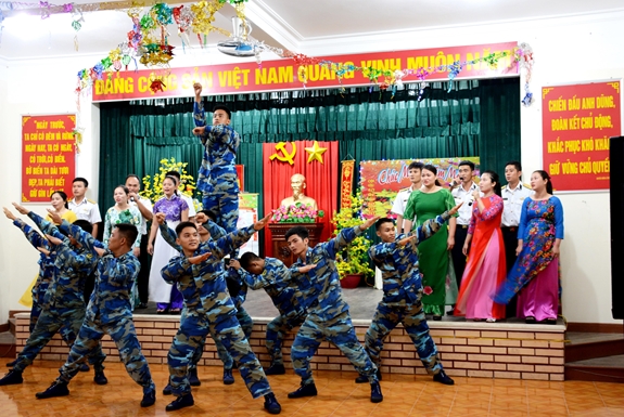春节期间,长沙岛上最热闹、最欢乐的是迎新文艺晚会 。风浪声中岛上战士和居民的歌声传到了东海海面。尽管歌声和弹奏声不算动听,但歌声表达了军民的欢乐和感情。潘荣岛驻军政治员先光事中校称 :“春节期间举行的文艺晚会及文体活动日益丰富成为驻岛战士和居民不可缺少的文化精神食粮、尤其是给在辞旧迎新时刻紧握钢枪保卫祖国海洋海岛主权的我们增添了力量”。