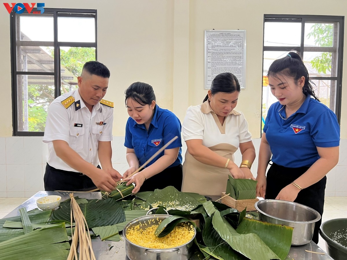 包粽子是海军第五区551团600号雷达站战士准备过年的活动之一。该雷达站设在安江省坚海特区南游岛的最高点,海拔约300米。今年春节,不少战士因执行特别任务而无法回家。他们中的一些多年来一直与战友在岛上过年。曾在西南岛屿上过了八个春节的600号雷达站政治员陈友全大尉表示:“包粽子是越南的传统文化习俗。春节期间组织军民包粽子,是驻扎在西南海域岛屿前线的干部战士独特的文化传统。我们全体干部战士都安心工作,并随时准备执行战斗任务。这是战士们的神圣职责之一,决心牢牢捍卫祖国海洋和岛屿的主权。