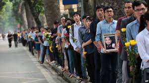 面对武元甲大将的遗像,每个人都盼着一吐心声。老街省的梁氏蓉说:“没有见到大将,只看到了大将遗像。大将去世了。我们老街人民一直想念大将”。